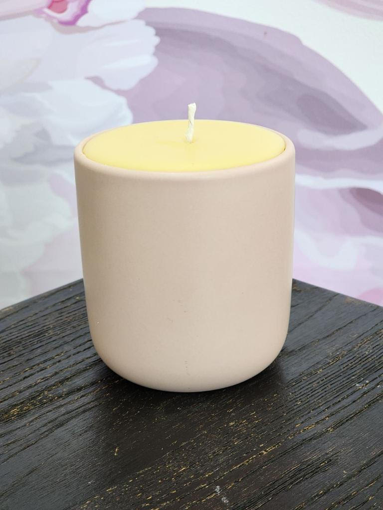 Introducing our timeless candle, elegantly housed in a spacious blush pink ceramic container. Experience the comforting embrace of our classic honey scent as it fills your space with warmth.